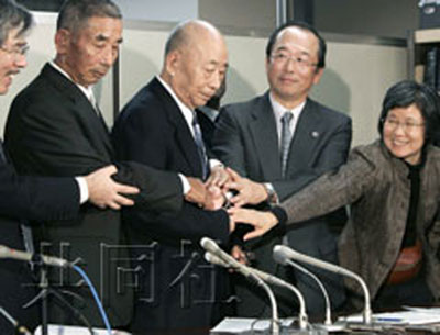 中新網(wǎng)10月23日電 據(jù)日本共同社報(bào)道,日本“西松建設(shè)”公司與二戰(zhàn)中被強(qiáng)擄至日本廣島工地從事過(guò)苛勞動(dòng)的中國(guó)勞工等23日達(dá)成和解,在東京霞關(guān)的司法記者俱樂(lè)部召開(kāi)的記者會(huì)上,雙方人士一同出席,百感交集的相互握手。