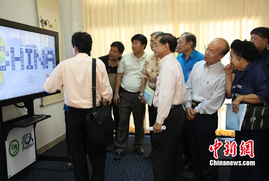 在孔子課堂“中國文化體驗(yàn)中心”,幾名高年級(jí)的學(xué)生正在引導(dǎo)50多位來自泰國北部清萊、清邁、南邦等8個(gè)府13所學(xué)校的理事和漢語教師,參觀孔子課堂利用現(xiàn)代多媒體科技手段打造而成的中國文化體驗(yàn)設(shè)備!翱,用手點(diǎn)這里就可以讓古箏發(fā)出聲音。”一名學(xué)生向記者展示著。用手指輕觸電子觸屏就能讓各色的“中華文化大餐”躍然于屏幕之上,中國傳統(tǒng)器樂展示、國粹京劇臉譜拍照和中國傳統(tǒng)剪紙?bào)w驗(yàn)更是令參觀者們個(gè)個(gè)豎起大拇指,連連叫好。