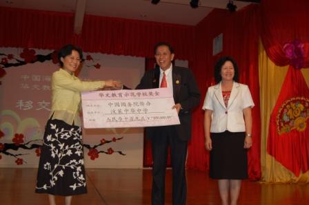 佟曉玲祝賀文萊中華中學(xué)于去年被中國(guó)海外交流協(xié)會(huì)授予“海外華文教育示范學(xué)!狈Q(chēng)號(hào),強(qiáng)調(diào)此次中國(guó)海外交流協(xié)會(huì)決定向文萊中華中學(xué)捐贈(zèng)10萬(wàn)元人民幣的辦學(xué)經(jīng)費(fèi),既是中國(guó)有關(guān)方面對(duì)文中所取得成就的承認(rèn)與鼓勵(lì),也體現(xiàn)了中國(guó)政府和人民對(duì)海外華文教育事業(yè)的高度重視與大力支持。她表示,隨著中國(guó)的進(jìn)一步發(fā)展和繁榮富強(qiáng),中國(guó)將向海外華文教育機(jī)構(gòu)提供更多資助。中國(guó)大使館也將一如既往地為文萊華文教育事業(yè)的發(fā)展貢獻(xiàn)力量。