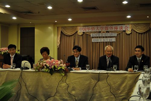 14日上午,代表團(tuán)在曼谷舉行泰國(guó)華文媒體見面會(huì)。華僑大學(xué)副校長(zhǎng)張禹東向泰國(guó)華文媒體介紹了華僑大學(xué)的辦學(xué)情況,特別是在泰國(guó)開展的華文教育情況和建校50周年慶典活動(dòng)的籌備情況,向泰國(guó)華文媒體對(duì)該校的長(zhǎng)期支持表示感謝,期望雙方今后繼續(xù)加強(qiáng)聯(lián)系合作,進(jìn)一步提升華僑大學(xué)在泰國(guó)的社會(huì)影響力。與會(huì)人員就如何在泰國(guó)華文媒體乃至泰文主流媒體建立密切有效的合作方式加強(qiáng)對(duì)華僑大學(xué)的宣傳、繼續(xù)組建泰國(guó)媒體訪問團(tuán)來校訪問、校慶報(bào)道等問題進(jìn)行了富有建設(shè)性的交流,就有關(guān)問題達(dá)成共識(shí)。