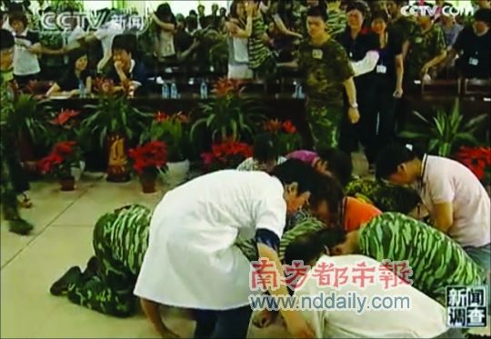 當(dāng)著《新聞?wù){(diào)查》節(jié)目組的面,楊永信在一次點(diǎn)評(píng)課后接受了十幾名接受治療的孩子及其家長(zhǎng)的跪拜感謝,楊永信稱這樣的場(chǎng)景讓他很激動(dòng),覺得自己的付出值了。