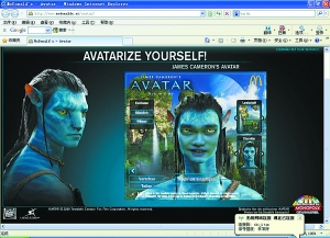 美國科幻大片《阿凡達》正在成為國內網民熱烈討論的對象。在百度貼吧內,“阿凡達吧”內帖子數量已經超過13萬。眾多網民熱烈討論《阿凡達》電影劇情與特技,將其與《三槍》等國產大片電影進行比較,而且動手制作自己的PS,變身為阿凡達。麥當勞網站推出的“阿凡達變臉器”軟件,可以將用戶上傳的照片直接制作成納美人的模樣。網友只要提供一張清楚的照片,利用該軟件,就可以在不到2分鐘的時間內變身為潘多拉星球上的納美人,擁有納美人兩個招風耳、藍色皮膚、紅色的眼睛。該軟件分成了男版和女版,供網民自主選擇,還可以自主更換背后場景。網民不僅制作李宇春、姚明、郭德綱、阿嬌、小沈陽等娛樂明星的“納美照”,而且自己紛紛變身為“納美人”,在網上曬出來供大家欣賞。記者發(fā)現,在百度上用“阿凡達變臉器下載”進行搜索,能找到2000多個網頁鏈接。許多網站還推出了該軟件的使用教程,吸引網民點擊。一家網站上還有網友發(fā)起了“納美人”選美大賽,網民紛紛上傳自己的“阿凡達頭像”,由網民投票進行PK。
