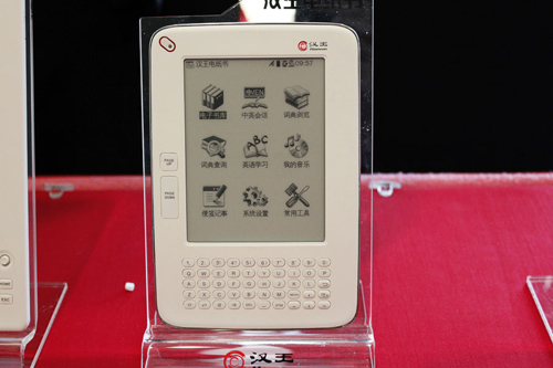 而在電子閱讀器終端方面,第三方數(shù)據(jù)顯示第一季度漢王在全球的電子閱讀器份額中占14.7%,較2009年同期大幅成長。而在2010年5月10日,伴隨著10余款新品的亮相,漢王電紙書終端的力量進一步增強。從5英寸到8英寸,從WIFI到3G,從全鍵盤到手寫,從LCD到EPD,從WinCE到Android,從單屏到多屏,漢王電紙書帶來了全方位的震撼。