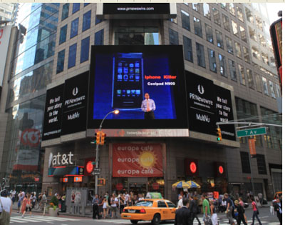 由于成為美國近一周來媒體關(guān)注的焦點(diǎn),作為紐約地標(biāo)建筑的時(shí)代廣場新聞電子大屏對《Yulong Launches Coolpad N900 in China to Combat iPhone》的新聞進(jìn)行了長時(shí)間的播報(bào),中國手機(jī)新力量可能對iphone產(chǎn)生的沖擊引起了美國社會(huì)的廣泛關(guān)注,這也是國產(chǎn)手機(jī)首次亮相紐約時(shí)代廣場。