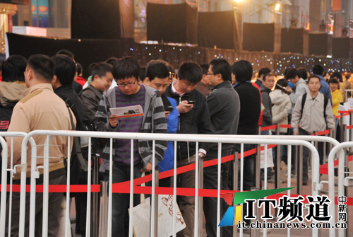 中新網(wǎng)10月30日電 中國聯(lián)通iPhone手機(jī)今日正式發(fā)布,首售儀式將于今日18時至次日凌晨在北京“世貿(mào)天階”舉行。記者在現(xiàn)場看到,雖然今晚天氣寒冷,但已經(jīng)有近300名消費(fèi)者在現(xiàn)場排隊等候購買聯(lián)通iPhone手機(jī)。