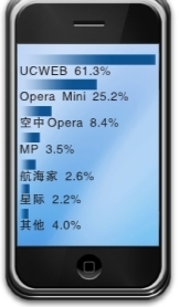報(bào)告顯示,目前從活躍用戶的市場(chǎng)占比情況來(lái)看,UCWEB用戶優(yōu)勢(shì)仍較為明顯,三季度約占活躍用戶總數(shù)的61.33%,Opera Mini活躍用戶數(shù)位居第二,約占活躍用戶總數(shù)的25.22%,此外,空中Opera約占總活躍用戶數(shù)的8.38%。但3G門(mén)戶、騰訊等廠商通過(guò)增加產(chǎn)品的適配性,紛紛發(fā)力手機(jī)瀏覽器市場(chǎng),利用原已積累的龐大的用戶群搶占了部分用戶界面。