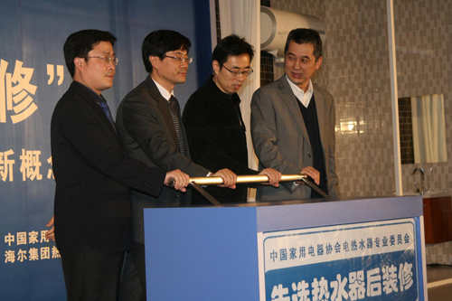 中新網(wǎng)3月8日電 日前,由中國(guó)家用電器協(xié)會(huì)電熱水器專業(yè)委員會(huì)主辦,專業(yè)委員會(huì)主任單位海爾熱水器公司承辦的“家裝新概念—先選熱水器后裝修”研討會(huì)在京舉辦,中國(guó)建筑裝飾協(xié)會(huì)、中國(guó)房地產(chǎn)協(xié)會(huì)以及阿里斯頓、美的、帥康、萬(wàn)和、萬(wàn)家樂(lè)、西門子、康泉等熱水器廠商參與了協(xié)辦。三大協(xié)會(huì)和八大熱水器生產(chǎn)企業(yè)針對(duì)大部分消費(fèi)者存在先裝修后選熱水器的習(xí)慣而帶來(lái)的用戶滿意度不高,共同倡導(dǎo)“先選熱水器后裝修”的消費(fèi)理念。旨在提高熱水器產(chǎn)品的用戶滿意度,為更多的消費(fèi)者提供舒適、安全、經(jīng)濟(jì)、健康、環(huán)保的洗浴環(huán)境。