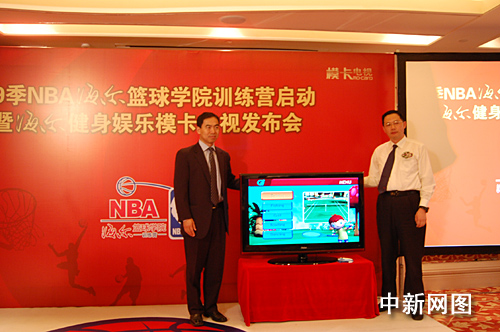 秉承NBA的體育及娛樂精神,在此次啟動(dòng)儀式上,作為NBA官方指定使用電視產(chǎn)品——海爾彩電推出了健身娛樂?娨,并發(fā)布了“云媒體”戰(zhàn)略。海爾集團(tuán)信息產(chǎn)品本部總工程師翟翌立博士介紹,海爾推出“健身娛樂?ā彪娨曋荚谧尭嗟娜俗悴怀鰬艟涂梢钥鞓方∩聿Ⅲw會(huì)NBA精神。同時(shí),隨著網(wǎng)絡(luò)時(shí)代的來(lái)臨,針對(duì)不同使用習(xí)慣用戶的需求,海爾彩電推出了“搜狐在線網(wǎng)絡(luò)模卡”和“迅雷下載網(wǎng)絡(luò)?ā,使得人們可以在家通過電視一鍵上網(wǎng)看高清大片,還將聯(lián)合更多的網(wǎng)絡(luò)內(nèi)容提供商,讓用戶無(wú)需擔(dān)心個(gè)人儲(chǔ)存設(shè)備空間的限制,可以隨時(shí)、無(wú)限量地自由選擇自己所需要的網(wǎng)絡(luò)內(nèi)容資源。