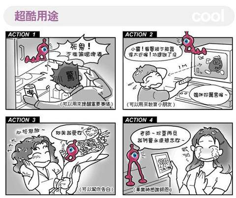 大大的眼睛、有三條帶吸盤的柔韌長(zhǎng)腳,一幅外星人的模樣。初次見它可能會(huì)認(rèn)為這不過(guò)是個(gè)造型有點(diǎn)另類的玩偶,其實(shí)它是個(gè)用途多多的留言機(jī),兩個(gè)人之間浪漫的貼心的交流……靠它轉(zhuǎn)達(dá)別有一番樂(lè)趣。