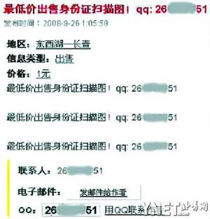 記者在互聯(lián)網(wǎng)上輸入“身份證復(fù)印件1元”后發(fā)現(xiàn),有不少類似的信息,“身份證復(fù)印件、掃描件,1元一份”、“出售真實身份證1代2代,一手貨源,可認證游戲賬號,注冊電子商務(wù)賬號,等等”!