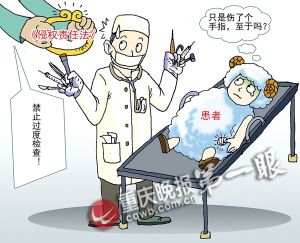 “下月起,醫(yī)院再對(duì)患者進(jìn)行過(guò)度檢查屬于違法。”重慶合縱律師事務(wù)所徐桂鵬律師介紹,《侵權(quán)責(zé)任法》7月1日起正式施行,該法對(duì)過(guò)度檢查作了明確禁止性規(guī)定。