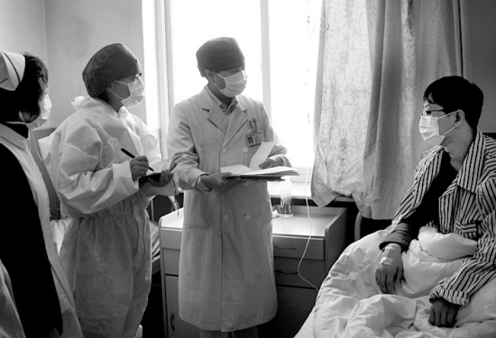 就在記者在醫(yī)院采訪的時候,院長馮虹又為抗甲流忙開了。市衛(wèi)生局領導到醫(yī)院,現(xiàn)場指導增設重癥病房的事。
