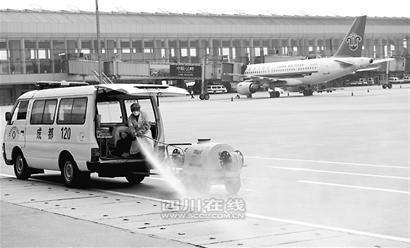“4月30日起,四川機(jī)場(chǎng)集團(tuán)就已按照民航總局的通知啟動(dòng)預(yù)防預(yù)案,并發(fā)布工作流程?梢哉f(shuō)雙流機(jī)場(chǎng)的防疫布控工作已經(jīng)在有序地進(jìn)行中!彪p流機(jī)場(chǎng)辦公室主任余吟波介紹,整個(gè)機(jī)場(chǎng)集團(tuán)成立了6個(gè)特別小組,包括排查組、現(xiàn)場(chǎng)體溫檢測(cè)組、物資保障組、消毒組、信息組以及轉(zhuǎn)運(yùn)組。