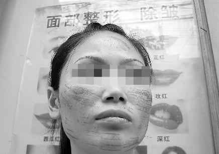 6月10日晚,喜歡美容的李信瓊在金花橋金興南路97號(hào)一家美容店內(nèi),做了一次所謂的“光子祛紅血絲”。但半個(gè)小時(shí)的功夫,她那張?jiān)詾楹赖陌變裘嫒,竟布滿了一條一條令人觸目驚心的“燒痕”。昨日,在屈辱和絕望的雙重打擊下,李信瓊再次來到店內(nèi)討要說法……
