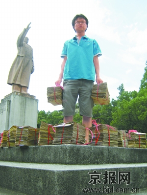 當(dāng)時(shí)雷闖邀請(qǐng)了他的一個(gè)同學(xué)陪同。這個(gè)同學(xué)除了拍照之外,還承擔(dān)著另一個(gè)任務(wù)——給杭州市的各家媒體打電話,希望能有記者前來(lái)報(bào)道。可結(jié)果讓雷闖很失望,這一次他并沒有引起媒體的注意。那個(gè)陪同的同學(xué),也因?yàn)椤笆懿涣寺啡说哪抗狻倍型倦x場(chǎng)。