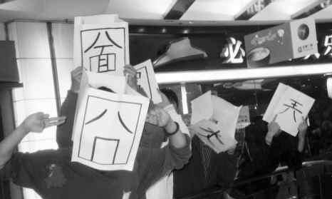 “可以看作是一種解壓方式,一種發(fā)泄吧,這些詞能代表現(xiàn)現(xiàn)代白領(lǐng)的各種心態(tài),例如‘囧’代表郁悶、‘烎’代表不服輸?shù)木竦鹊取!盡K說,他會(huì)在廣州六個(gè)白領(lǐng)出現(xiàn)較多的地方進(jìn)行這樣的表演,還打算將這些表演做成視頻放到網(wǎng)上去。
