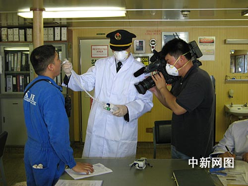 外高橋邊檢站民警告訴記者,巴拿馬籍“曼哈頓橋”輪于昨天(5月5日)上午8時靠泊外高橋碼頭。該輪由于途徑甲型H1N1流感疫情較重的美國,且船上有一名菲律賓籍船員體溫異常,邊檢和衛(wèi)檢啟動聯(lián)動應急預案,在第一時間對其進行了專門檢查和檢疫。