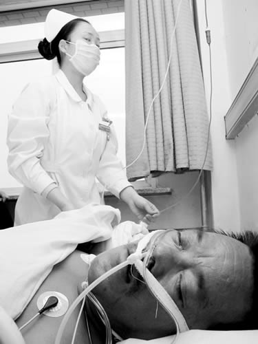1日夜里,患者病情突然加重,醫(yī)護人員立即投入緊急搶救,再次將瀕危的患者從死亡線上拉回來。不久,患者出現(xiàn)精神躁動,意識混亂的他竟掙脫護士的雙手,自己拔掉輸液管,生命監(jiān)護儀上,他的血壓、心跳再次異!