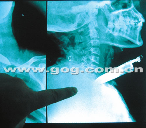 貴醫(yī)附院耳鼻喉科主治醫(yī)生王曉云告訴記者,老人被送到醫(yī)院時,喉嚨上插著一把水果刀,進入喉嚨的刀鋒部分大約有6.5公分。王曉云說:“經(jīng)檢查,老人頸部和肺尖受傷,生命垂危。由于水果刀可能傷到大動脈,手術(shù)有風(fēng)險,要求家屬簽字,但老人一直不透露家人的信息,我們醫(yī)院也很為難!