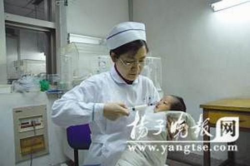 4日上午,記者來到儀征市人民醫(yī)院婦產(chǎn)科,只見朱汝成護士長正在用針管小心翼翼地給“小牛娃”喂奶。由于小家伙鼻腔和口腔相通,不能自己喝奶,每次只能用針管,還要小心謹慎,生怕嗆著孩子。記者注意到,“小牛娃”用依戀的眼神看著護士長,朱護士長說,每次看見小孩子的眼神,心里特別難過,自己也是母親,知道這么個小生命實在太脆弱了。現(xiàn)在自己照顧他,就把他當成自己的孩子,孩子是無辜的,他也是一個小生命!靶∨M蕖背酝昴毯螅熳o士長又把他放進幼兒床里,因為怕小家伙著涼,辦公室的空調(diào)始終開著,從正月初三起,婦產(chǎn)科全體醫(yī)護人員輪流照顧孩子,并給孩子購買奶粉、衣服、尿不濕等必需品。