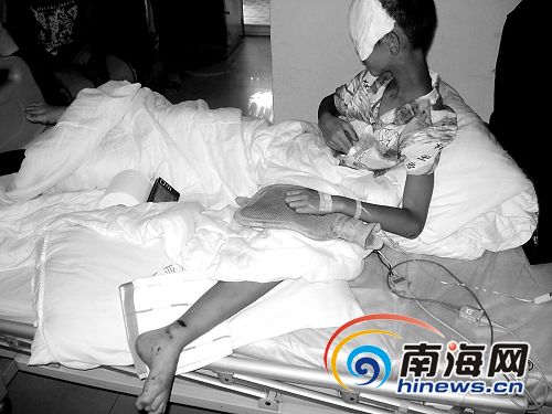 2月10日上午9點,記者在三亞中醫(yī)院見到了小澤,他的右腿已經(jīng)進行了手術(shù),頭部進行了植皮手術(shù),下午醫(yī)生還要為他的左腿進行手術(shù),幸運的是他已經(jīng)脫離危險!搬t(yī)藥費已經(jīng)花了3萬塊錢了,要治好最少也要5萬元!崩贤粽f,但是現(xiàn)在肇事者還沒有找到。事發(fā)時,眾人看清了肇事車的車牌——瓊C27xx9,立即將這一情況向辦案民警反映。