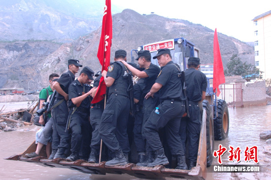 8月8日下午15時,成都公安特警集結(jié)150人的隊伍從成綿高速成都入口處出發(fā),以摩托化開進的方式,途經(jīng)成綿高速、綿廣高速出廣元昭化出口,上122國道經(jīng)青川、甘肅文縣、隴南市,經(jīng)過800公里連續(xù)18個小時的不間斷長途跋涉,首批隊伍共計80人于9日上午8時15分到達(dá)災(zāi)區(qū)舟曲縣城。第二批隊伍于9日15時許到達(dá)舟曲。