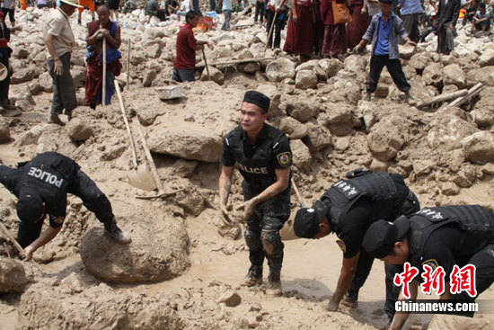 中新網(wǎng)舟曲8月9日電(劉賢 徐楊祎)成都公安特警兩批共150名救援官兵于9日先后到達(dá)甘肅舟曲災(zāi)區(qū)。救援官兵組織的35人青年突擊隊已協(xié)助武警和當(dāng)?shù)孛癖瘸?名遇困群眾,挖出兩具遇難群眾遺體。