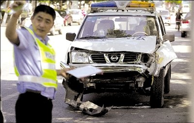 李先生隨即攔下一輛過路車,向西追去。皮卡在路上畫著“之”字形跑,逆行了100多米后,撞上了一輛正常行駛的送報(bào)自行車,送報(bào)員連人帶車重重摔倒在地。而皮卡車?yán)^續(xù)向前逆行了100多米,沖過順義五中大門,一頭撞上便道上的一棵樹后才停了下來。李先生和其他目擊者走近前發(fā)現(xiàn),肇事的皮卡原來是一輛城管執(zhí)法車,車上僅司機(jī)一人。該司機(jī)不是城管隊(duì)員,而是一名城管協(xié)管員。