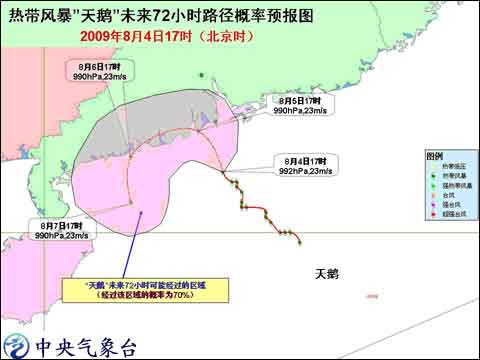 中央氣象臺2009年8月4日18時(shí)發(fā)布臺風(fēng)橙色警報(bào):