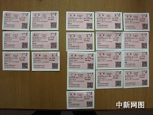 2月10日15時,重慶鐵警趁兩名旅客進(jìn)入該門市取票時迅速出擊,當(dāng)場將正在向旅客高價倒賣火車票的王某抓獲。經(jīng)搜查,重慶鐵警共查獲2月15至18日重慶至廣州、遵義,成都至保定、上海等地實名制火車票19張,價值4406元,另有身份證65個,訂票單據(jù)3本。