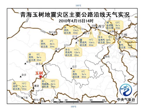據(jù)悉此次專報(bào)重點(diǎn)針對(duì)青海玉樹地震災(zāi)區(qū)天氣情況和氣候背景進(jìn)行預(yù)報(bào)和分析,主要包括震區(qū)最新天氣實(shí)況、玉樹地震災(zāi)區(qū)未來5天天氣預(yù)報(bào)、道路交通氣象預(yù)報(bào)、決策建議以及玉樹地震災(zāi)區(qū)氣候背景分析和氣候趨勢(shì)預(yù)測(cè)等內(nèi)容。