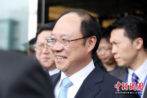 鄭立中向在場守候的兩岸媒體記者微笑招手致意,不過未發(fā)表談話。海協(xié)會其他成員李亞飛、徐莽、馬曉光、張勝林等也同機抵達。