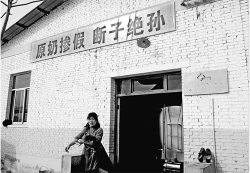 涇陽縣多家奶廠,近日都貼出同樣內(nèi)容的一條雷人標語:“原奶摻假,斷子絕孫”。涇陽縣蔣路鄉(xiāng)澳西牧場63歲的飼養(yǎng)員董學文說,看到這個標語就不舒服。張貼標語的公司希望各方面汲取三聚氰胺事件的教訓,標語的目的在于警示,也表明企業(yè)抓質量的態(tài)度。牧場總經(jīng)理梁軍表示,他能理解公司這么做的初衷,但內(nèi)容值得商榷。(魏光敬 謝勇強攝影報道)