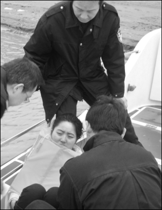 獲救女子上船后奄奄一息,口吐鮮血,不能說話,民警用艇上的干衣服給她取暖。巡邏艇馬上駛向最近的大橋邊,鄂州市120醫(yī)護(hù)人員已在碼頭等候,女子被送往鄂州市中心醫(yī)院搶救。警方隨后擴(kuò)大搜尋到長江下游7000米遠(yuǎn)的浠水巴河水域,沒有找到失蹤的男子。