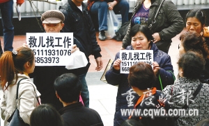 昨上午,三峽廣場(chǎng)新世紀(jì)門口,一對(duì)頭發(fā)花白的老人手舉“為救兒,跪求一份工作”的牌子,引來(lái)不少市民圍觀。夫婦倆男的叫余柏容,67歲,豐都縣崇興鄉(xiāng)春花村4組人,妻子湛正芳,65歲。余柏容說(shuō),兒子余雷今年27歲,之前在井口民豐化工廠當(dāng)工人,老兩口和兒子、兒媳、孫兒一起擠住在井口先鋒街租賃房。去年,該廠搬遷到潼南,余雷夫妻隨工廠去了潼南。