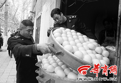 那位店主還告訴他饅頭變白有好幾種辦法,一種是給面粉里添加增白劑,有漂白粉、吊白塊等,一袋面粉中就加二三兩。最省錢的辦法就是在饅頭蒸好之后,在籠屜的下方,放入點(diǎn)燃的硫磺。“只要乒乓球大一塊,就能熏兩三千個(gè)饅頭!崩顜煾捣Q,好多饅頭有硫磺味兒,皮是白的,里面是黑的,就是用硫磺熏蒸的結(jié)果。