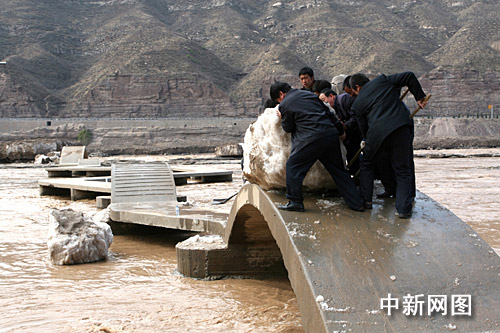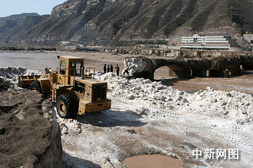 為早日使景區(qū)開(kāi)放,在一年一度桃花訊來(lái)臨后,河道的冰塊被洪水沖刷的所剩無(wú)幾,加之天氣漸漸變暖,使景區(qū)道路冰塊融化,壺口管委會(huì)決定采取機(jī)械與人工清理冰塊的辦法,及時(shí)組織景區(qū)干部職工和景區(qū)群眾配合機(jī)械對(duì)冰塊進(jìn)行清理。