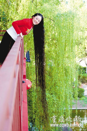 程世瓊身高1.56米,頭發(fā)垂下后,幾乎一半都拖在地上。每天早上,她要花半個(gè)小時(shí)將頭發(fā)辮好,盤在頭上,晚上睡覺時(shí)再解開。最麻煩的是每周洗一次頭發(fā)。為此,她專門準(zhǔn)備了一個(gè)大盆子,洗時(shí),將頭發(fā)全部放在盆里,洗干凈后,用自己配制的藥水浸泡至少5分鐘。