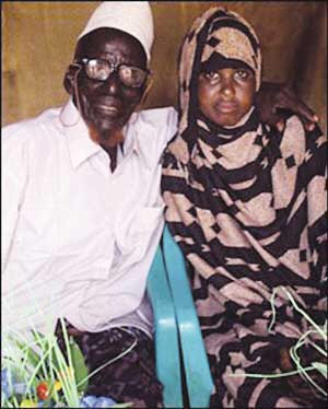 揚(yáng)子晚報消息,據(jù)英國媒體30日報道,現(xiàn)年112歲的索馬里老漢阿赫邁德·穆哈邁德·多爾一生總計(jì)結(jié)過5次婚,并擁有總計(jì)114名子女和孫輩。但令人目瞪口呆的是,日前多爾又舉行了第6次婚禮,娶了比他小95歲的17歲少女薩菲婭·阿卜杜勒。盡管“新郎”多爾年齡大得足以做“新娘”薩菲婭的高祖父(爺爺?shù)臓敔?,但多爾竟然表示婚后將和新婚妻子薩菲婭生育更多兒女。