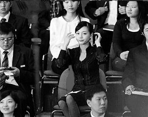 11月16日13時,對中國進(jìn)行國事訪問的美國總統(tǒng)奧巴馬走進(jìn)上?萍拣^會場,與中國青年展開對話。但是和奧巴馬的演講相比,現(xiàn)場攝影記者對一名黑衣女子表現(xiàn)出了更大的興趣。這名美女在現(xiàn)場脫掉紅色外套露出黑色套裝的全過程被記者用相機記錄下來,被制作成GIF動畫上傳網(wǎng)絡(luò),隨后這組動畫在網(wǎng)上論壇以及QQ群里廣泛傳播,隨后又有網(wǎng)友將奧巴馬演講視頻中有關(guān)該女子的片段截圖上傳,黑衣美女的美貌和氣質(zhì)迅速傾倒眾人。