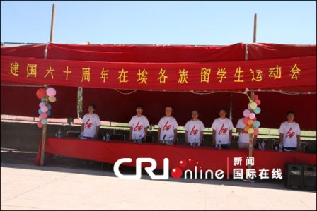 “建國60周年在埃各族留學生運動會”25日在埃及艾因夏姆斯大學工程系體育場舉行,中國駐埃及使館王克儉公參等出席運動會開幕式并觀看比賽。
