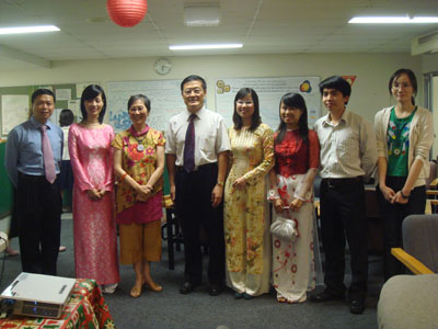 聚會(huì)中,任共平與中國(guó)留學(xué)生進(jìn)行交談,了解他們的學(xué)習(xí)和生活情況,遠(yuǎn)離祖國(guó)的莘莘學(xué)子們激動(dòng)不已,大家表示一定努力學(xué)習(xí),與各國(guó)留學(xué)生發(fā)展友誼,共建美好地球家園。格里菲斯大學(xué)環(huán)境和人口健康中心主任朱明若教授用很具中國(guó)特色的歡迎辭讓每位參加者感受到了國(guó)際大家庭的溫暖。