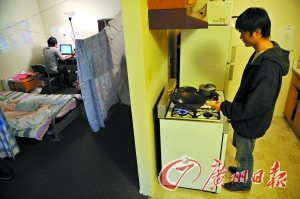 與李俊強同住的小伙子叫郭郭。他家境一般,選了這個套房的客廳作為暫居之地!拔覜]有想過留在這里,也許畢業(yè)了就回國吧,工程藝術這個專業(yè)在國內(nèi)很容易找到一份好工作的。”郭郭是山東人,女朋友還在家鄉(xiāng),每天他都要通過網(wǎng)絡和女友通話,而剩下的時間基本用在學習上了。