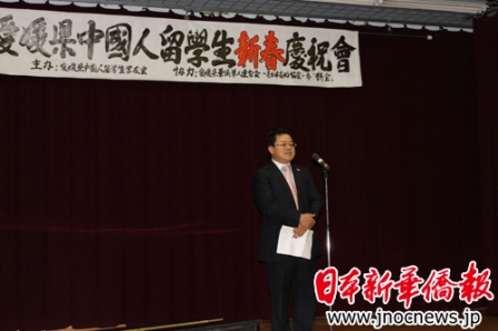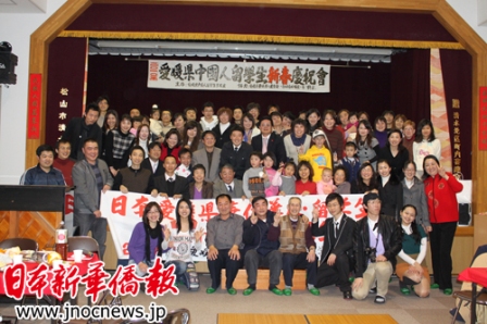 在愛(ài)媛大學(xué)和松山大學(xué)的大學(xué)學(xué)習(xí)的中國(guó)留學(xué)生和他們的家屬、愛(ài)媛縣華僑華人聯(lián)合會(huì)部分會(huì)員以及愛(ài)媛縣日中友好協(xié)會(huì)、松山市鵲會(huì)的日本友人共百余人參加了慶祝會(huì)。