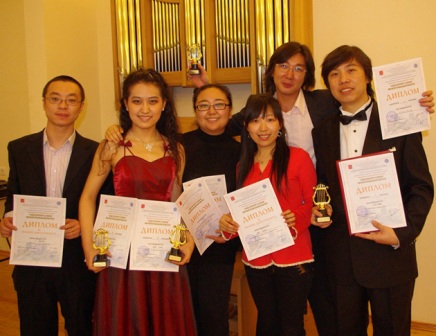 在這次音樂大賽中中國(guó)選手成績(jī)喜人,前來(lái)參賽的八位選手均獲得證書和獎(jiǎng)杯,他們有的是在圣彼得堡留學(xué)的學(xué)生,有的是國(guó)內(nèi)大學(xué)的學(xué)生。分別參加了鋼琴獨(dú)奏組、管弦樂器組、獨(dú)唱組、合唱指揮組的比賽并都取得優(yōu)異成績(jī)。獨(dú)唱組高翔(赫爾岑師范大學(xué)的留學(xué)生)獲得一等獎(jiǎng);合唱指揮組陳西澤(赫爾岑師范大學(xué)的留學(xué)生)獲得二等獎(jiǎng),一等獎(jiǎng)空缺;鋼琴獨(dú)奏組賈超(赫爾岑師范大學(xué)的留學(xué)生)獲得二等獎(jiǎng)、張鵬(沈陽(yáng)音樂學(xué)院在校生)獲得二等獎(jiǎng)、張晶瑩(赫爾岑師范大學(xué)的留學(xué)生)獲得優(yōu)秀獎(jiǎng)、齊麗娜(赫爾岑師范大學(xué)的留學(xué)生)獲得優(yōu)秀獎(jiǎng)、劉博(赫爾岑師范大學(xué)的留學(xué)生)獲得優(yōu)秀獎(jiǎng);管弦樂器組米磊(赫爾岑師范大學(xué)的留學(xué)生)獲得優(yōu)秀獎(jiǎng)。赫爾岑師范大學(xué)的高翔還獲得了由美國(guó)紐約長(zhǎng)島音樂學(xué)院特別頒發(fā)的創(chuàng)意亮相獎(jiǎng)。(佳佳)