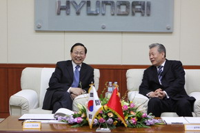 中新網(wǎng)4月13日電 據(jù)外交部網(wǎng)站消息,2010年4月9日,應現(xiàn)代起亞自動車集團邀請,張鑫森大使率領由中國駐韓國大使館館員、在韓留學生等200余人組成的“中韓友好產(chǎn)業(yè)考察團”訪問了位于忠清南道牙山市的現(xiàn)代汽車牙山工廠。韓國國務總理室吳鈞局長、知識經(jīng)濟部、教育科技部、外交通商部等部門官員出席了有關活動。