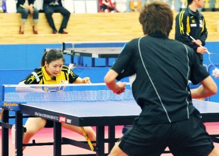 中新網(wǎng)5月7日電 據(jù)日本新華僑報(bào)網(wǎng)報(bào)道,為獲得即將在俄羅斯莫斯科即將開(kāi)幕的第50屆世界乒乓球錦標(biāo)賽參賽權(quán),5月6日,日本選手在東京味之素國(guó)家訓(xùn)練中心,舉行了模擬假想敵的公開(kāi)訓(xùn)練。其中,能說(shuō)一口流利的漢語(yǔ),深受中日人民喜愛(ài)的日本乒乓名將福原愛(ài),則視羅馬尼亞一號(hào)主力丹妮拉·多德安為預(yù)選賽階段最大的對(duì)手。為此,她選擇了一名男陪練,專門(mén)模仿丹妮拉·多德安的打法。身高170cm的丹妮拉·多德安擅長(zhǎng)削球,過(guò)去曾在比賽中與身高僅有156cm的福田愛(ài)交過(guò)手,福田愛(ài)的成績(jī)是3勝兩敗。