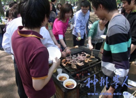 經(jīng)過大約半個小時的徒步行進撿垃圾,大家順利到達(dá)燒烤大會會場(秋ヶ瀬公園)。大家臉上洋溢著笑容,因為大家相互協(xié)助,在異國他鄉(xiāng)的日本,通過這一小小的行動,得到了當(dāng)?shù)厝毡九笥褌兊姆Q贊和支持。同時,為達(dá)到大學(xué)間留學(xué)生的交流和讓大家感受集體溫暖與歡樂的目的,上武大學(xué)、東京國際大學(xué)、理化學(xué)研究所的部分中國留學(xué)生及工作人員也積極響應(yīng)參加了活動。上武大學(xué)中國留學(xué)生學(xué)友會會長繆逸峰,東京國際大學(xué)中國留學(xué)生學(xué)友會副會長沈捷,理化學(xué)研究所中國人聯(lián)合會的外聯(lián)部長安素峰也表示通過小小的行動,提高了大家的意識。