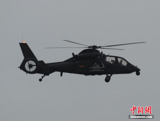 中新網(wǎng)珠海11月11日電(陳海峰) 中國陸航直19武裝直升機(jī)11日在珠海航展上空進(jìn)行了精彩的飛行表演。