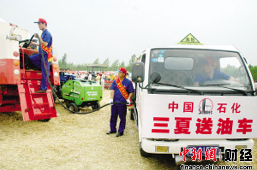 中新網(wǎng)7月12日電 今年“三夏”期間,中國石化承擔(dān)起了全國近90%夏糧種植面積機收的供油任務(wù),開展以“保供、保運、保質(zhì)、保量”和“優(yōu)惠價格、優(yōu)質(zhì)服務(wù)”為主要內(nèi)容的“四保兩優(yōu)”專項活動,以優(yōu)質(zhì)的油品和優(yōu)良的服務(wù)圓滿完成“三夏”供油任務(wù)。